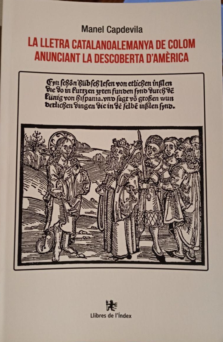 Es presenten arguments inèdits demostrant que la 1ª carta impresa fou en català, o al menys que l’edició en català fou anterior a l’edició “in Folio” de Barcelona, fet recolzat pels estudiosos alemanys de l’edició alemanya, ja que a la versió alemanya, impresa per Kistler a Strassburg, on diu clarament que fou traduida del català i del llatí: “Getüetschet vß der katilonischen zungen vnd vß dem Latin”, conté un munt de dades importants que no apareixen a cap de les altres setze edicions de la carta, dades detallades a la traducció adjunta del llibre de Haebler en alemany de 1890, amagat i no traduit fins ara a cap altre llengua, per aquest motiu-.. ja que va contra els interessos dels americans: La que van comprar no seria la primera carta impresa.., dels castellans: La primera carta no seria en castellà.. i dels italians: Massa connexió de Colom amb el català.