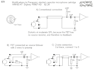 En aquesta entrada es descriurà el circuit utilitzat per substituir un micròfon de carboni per un electret modern,el circuit és molt senzill (només s'utilitzen 6 components)i té un alt guany.