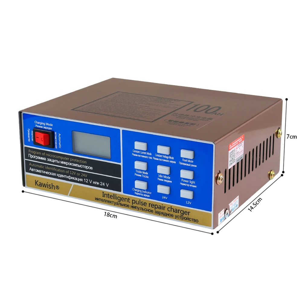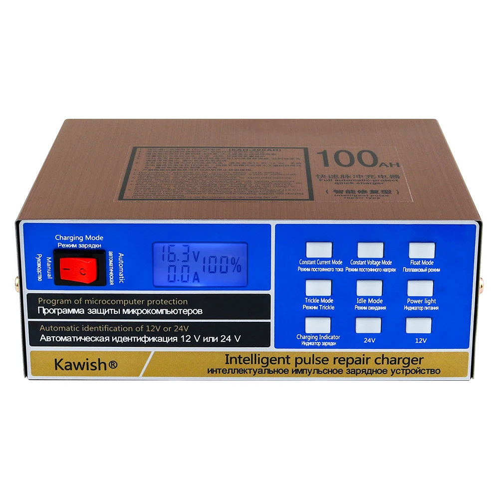 Automatic:pulg AC power first then connect battery with charger,it will recognize volgate automatic,telligent and convenient.
