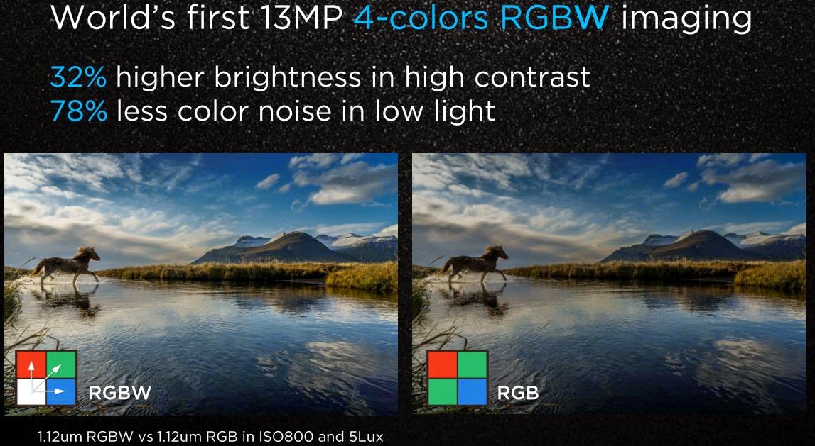 Of course, it is not the first 13MP RGBW sensor. And Samsung in 2013, and Sony later do it. But as i think they refused of it. As I think, really RGBW sensor have not benefits.