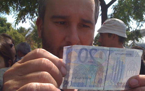 La proppassada Diada, en acabar l'Acte en homenatge al comandant Moragues, en Ramon Carner, president del Cercle Català de Negocis (CCN), qui surt a la fotografia, em va mostrar el següent. Els bitllets de 20 € duen les quatre barres. Posant-los a contrallum, s'hi pot distingir clarament un escut amb el nostre símbol nacional.